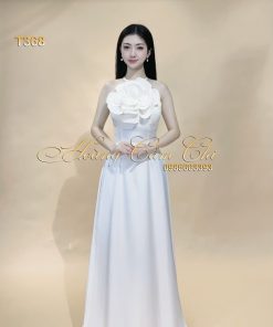 Áo dài biểu diễn thiết kế cao cấp mã T368 màu trắng Hoàng Cẩm Chi