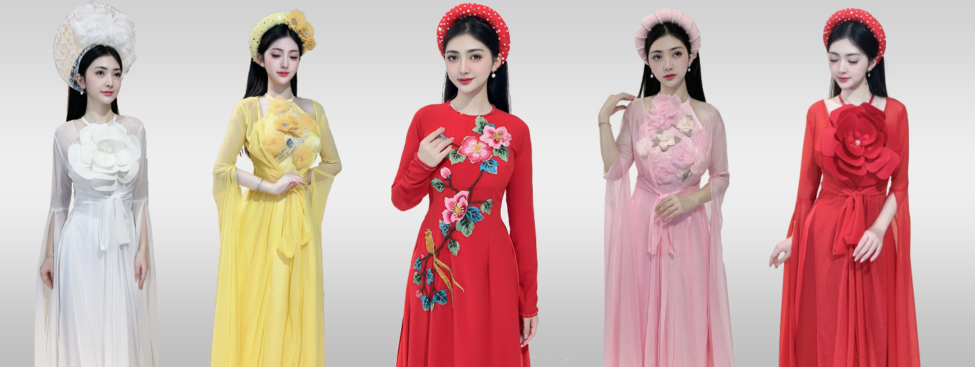 Áo dài thiết kế Mộng Mơ mã T400 Hoàng Cẩm Chi