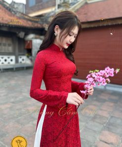 Áo dài gấm tơ tằm Đông Hưng – Hoàng Cẩm Chi – Chất liệu Cao Cấp – Họa Tiết Hoa Trà – Màu Đỏ May Mắn