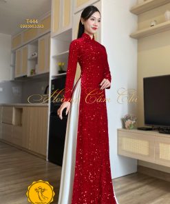 Áo dài Nhung Kim Sa Màu Đỏ Tươi Hoàng Cẩm Chi