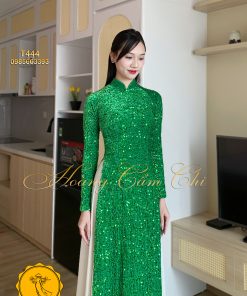 Áo dài Nhung Kim Sa màu Hồng Sen và Xanh Lá Hoàng Cẩm Chi