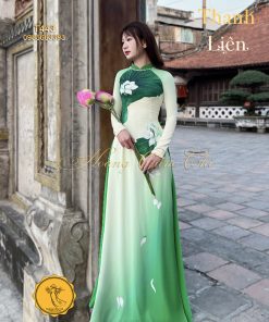 Áo dài thiết kế Thanh Liên – In hoa và lá sen nổi bật thương hiệu Hoàng Cẩm Chi