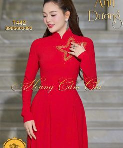 Áo dài thiết kế đính phale hình sao vàng vải lụa cao cấp Hoàng Cẩm Chi