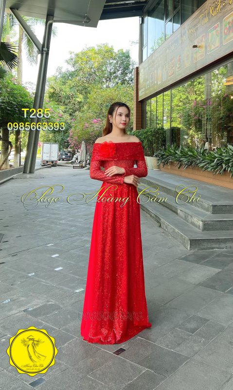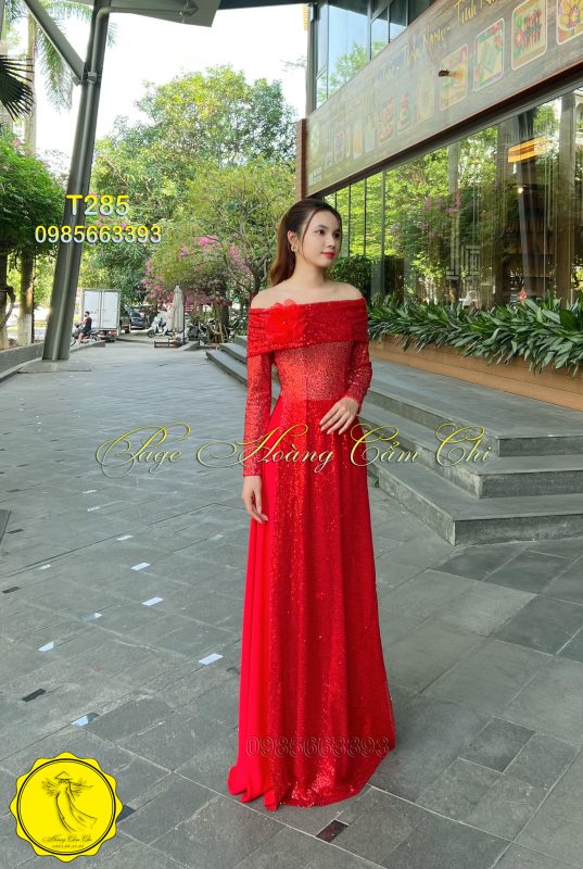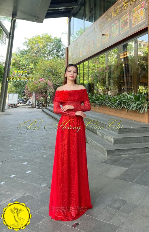 🌹 Áo dài dạ hội T285 mang đến vẻ đẹp tinh tế với sắc đỏ rực rỡ tượng trưng cho may mắn và thành công.