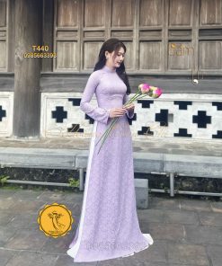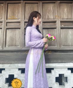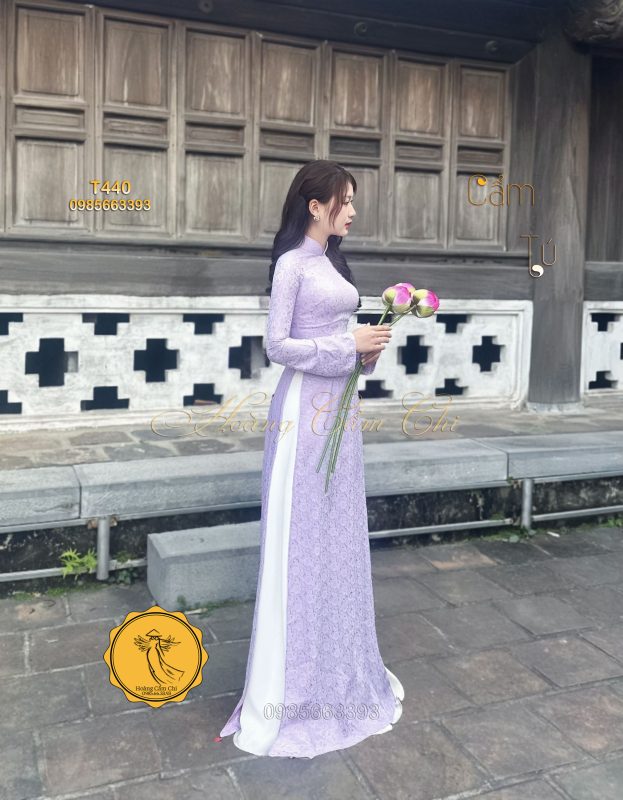 Đánh giá Áo dài gấm tơ tằm Đông Hưng – Hoàng Cẩm Chi – Chất liệu Cao Cấp – Họa Tiết Hoa Trà – Màu Tím Mộng Mer