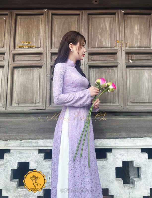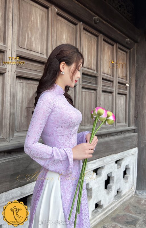 Đánh giá Áo dài gấm tơ tằm Đông Hưng – Hoàng Cẩm Chi – Chất liệu Cao Cấp – Họa Tiết Hoa Trà – Màu Tím Mộng Mer