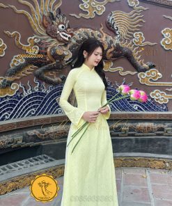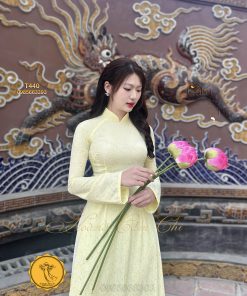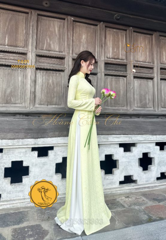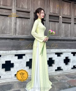 Đánh giá Áo dài gấm tơ tằm Đông Hưng – Hoàng Cẩm Chi – Chất liệu Cao Cấp – Họa Tiết Hoa Trà – Màu Vàng Phú Quý