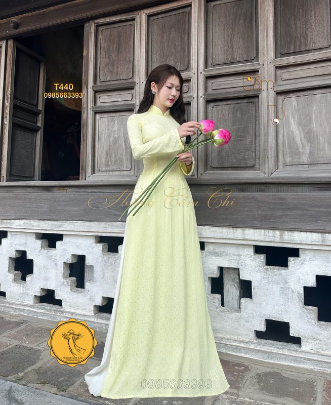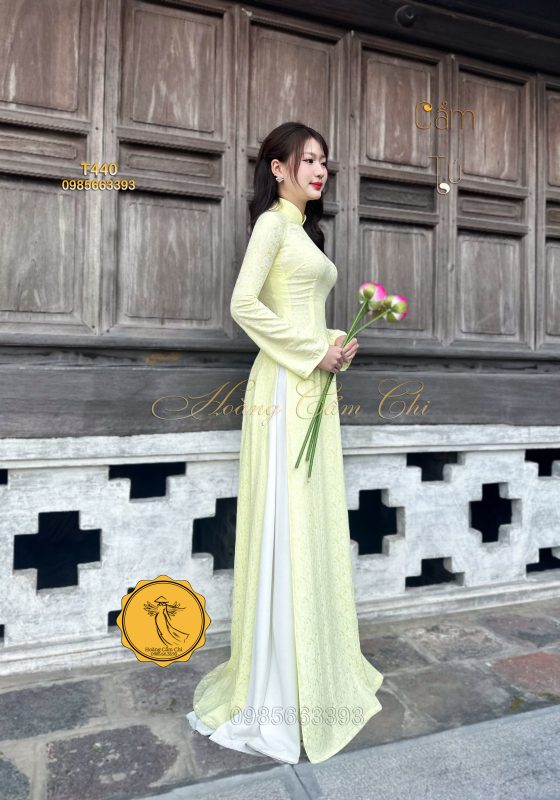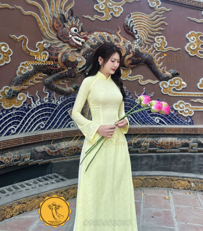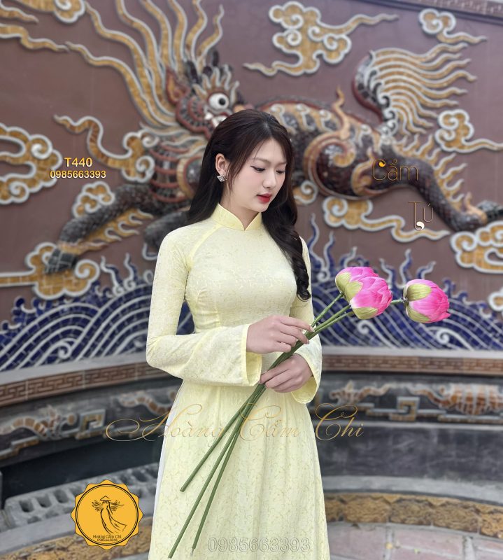 Đánh giá Áo dài gấm tơ tằm Đông Hưng – Hoàng Cẩm Chi – Chất liệu Cao Cấp – Họa Tiết Hoa Trà – Màu Vàng Phú Quý