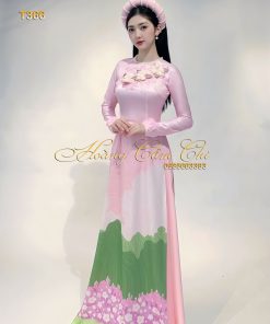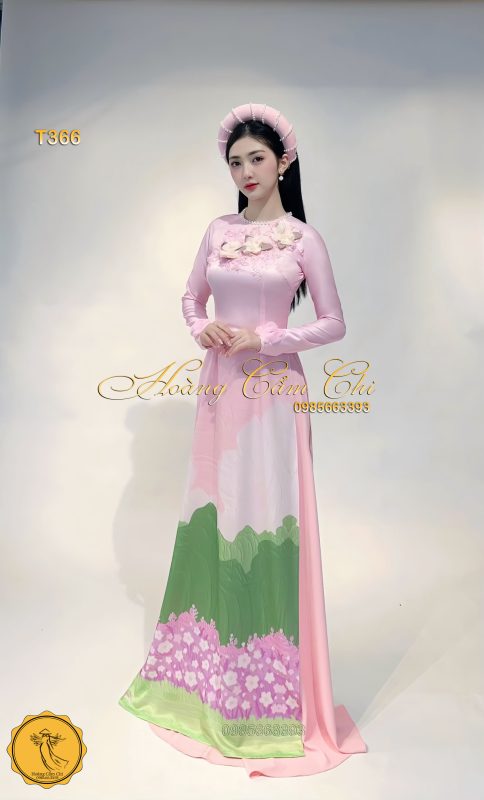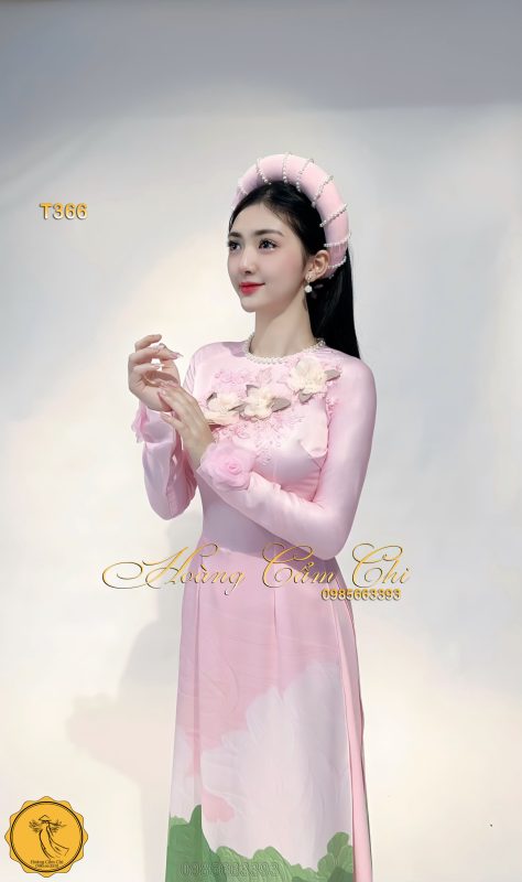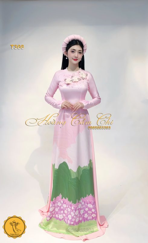 Sản phẩm trong hình là mẫu áo dài T366 của thương hiệu Hoàng Cẩm Chi, với thiết kế mang phong cách nhẹ nhàng, thanh lịch: