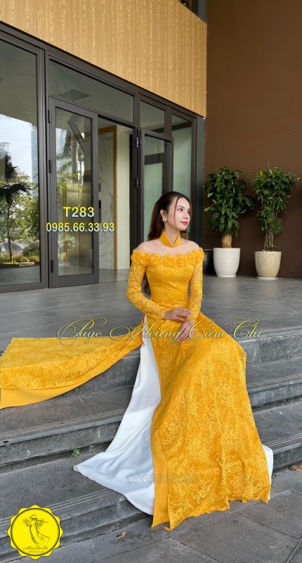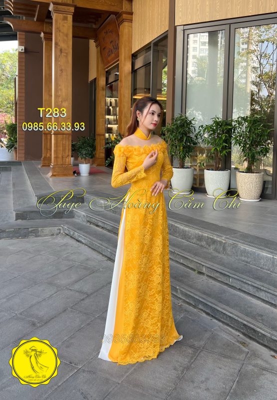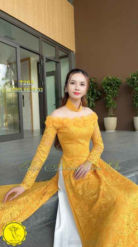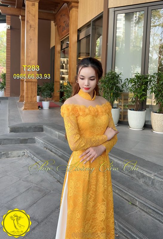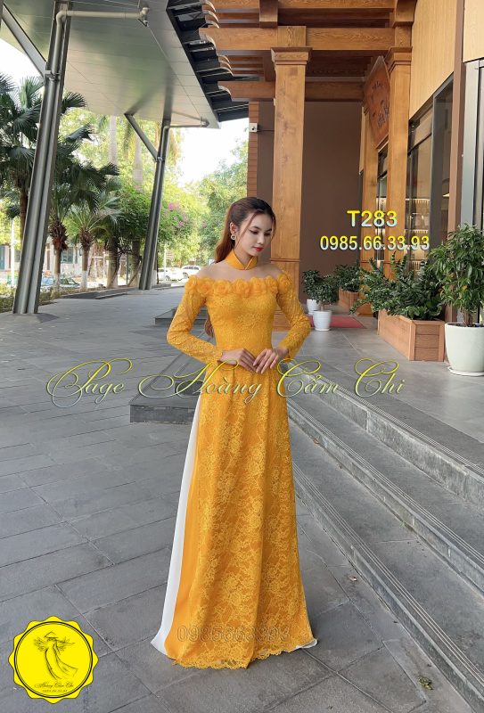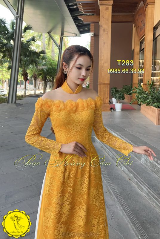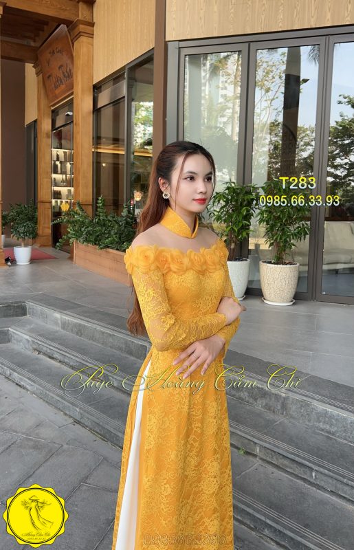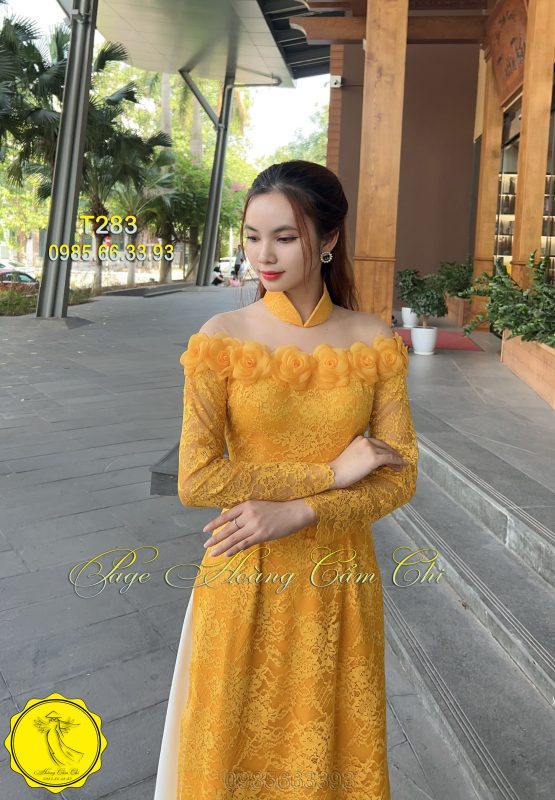 Đánh giá Áo Dài Ren Hoa Hồng Vàng Hoàng Gia mã T283 Hoàng Cẩm Chi