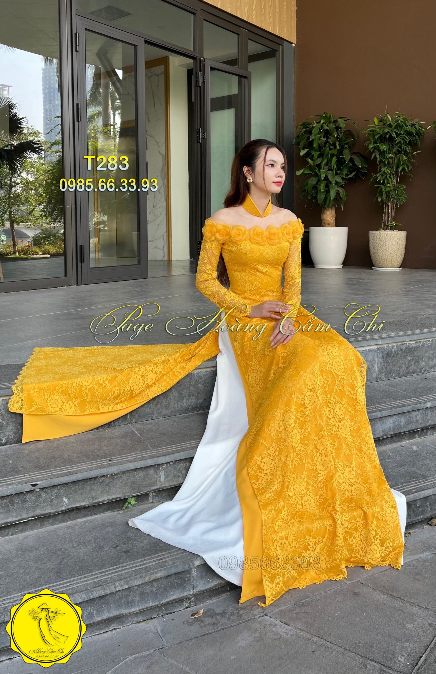 Đánh giá Áo Dài Ren Hoa Hồng Vàng Hoàng Gia mã T283 Hoàng Cẩm Chi