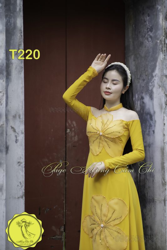 Đánh giá Áo dài thiết kế Ánh Hoa Rực Rỡ màu vàng mã T220 Hoàng Cẩm Chi