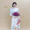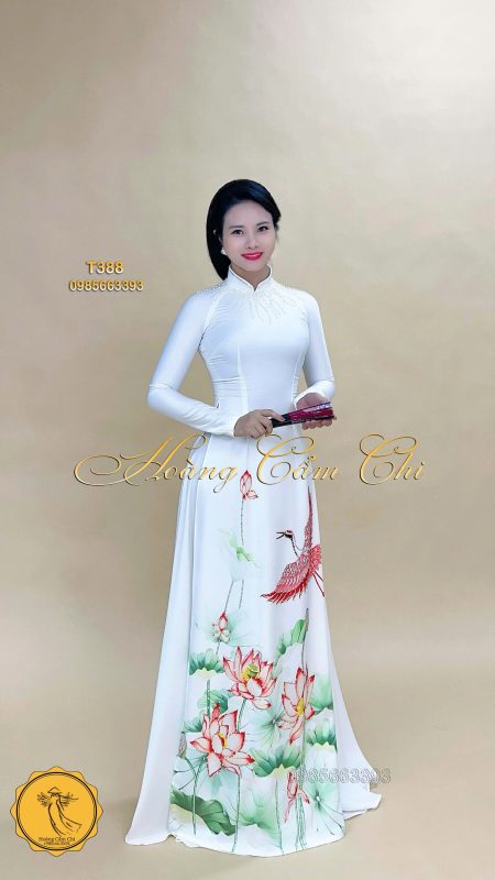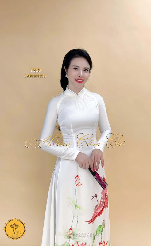 BST áo dài trắng với họa tiết hoa sen & chim hạc – biểu tượng cho vẻ đẹp thanh cao, thuần khiết của người phụ nữ Việt.