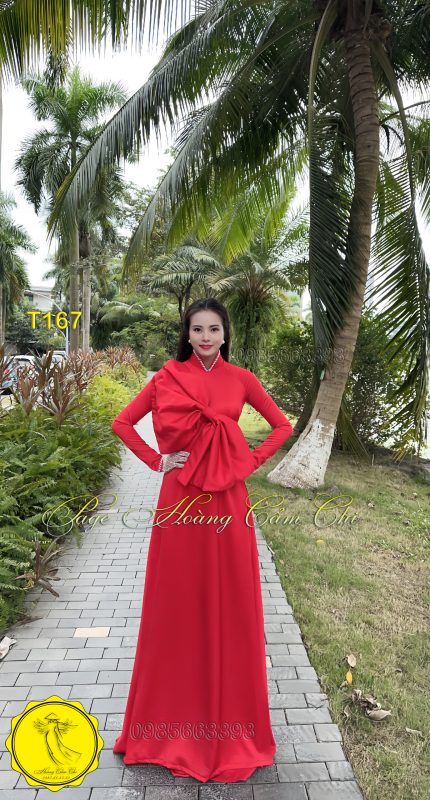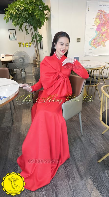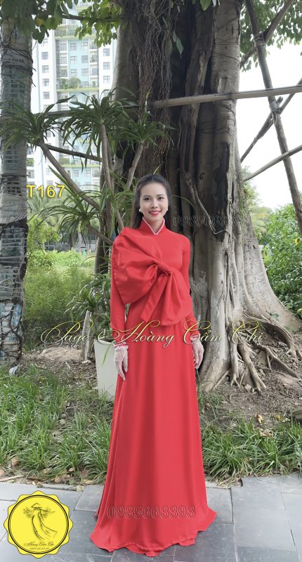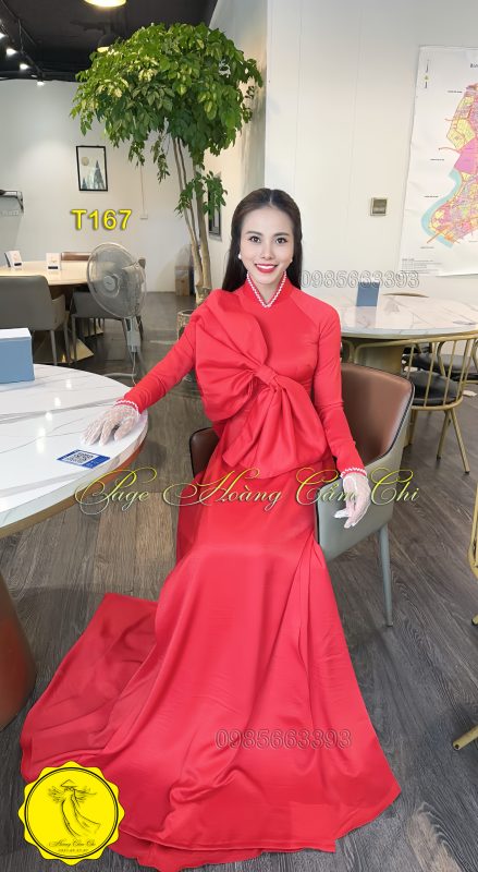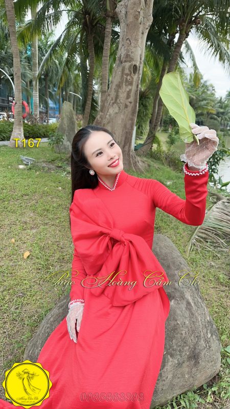 Đánh giá Áo dài thiết kế cách điệu nơ bản lớn màu đỏ mã T167 Hoàng Cẩm Chi