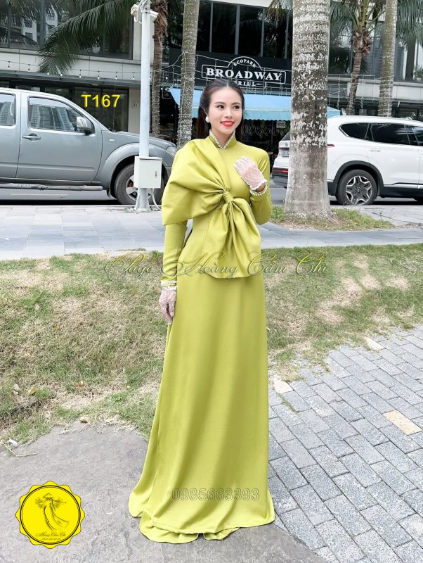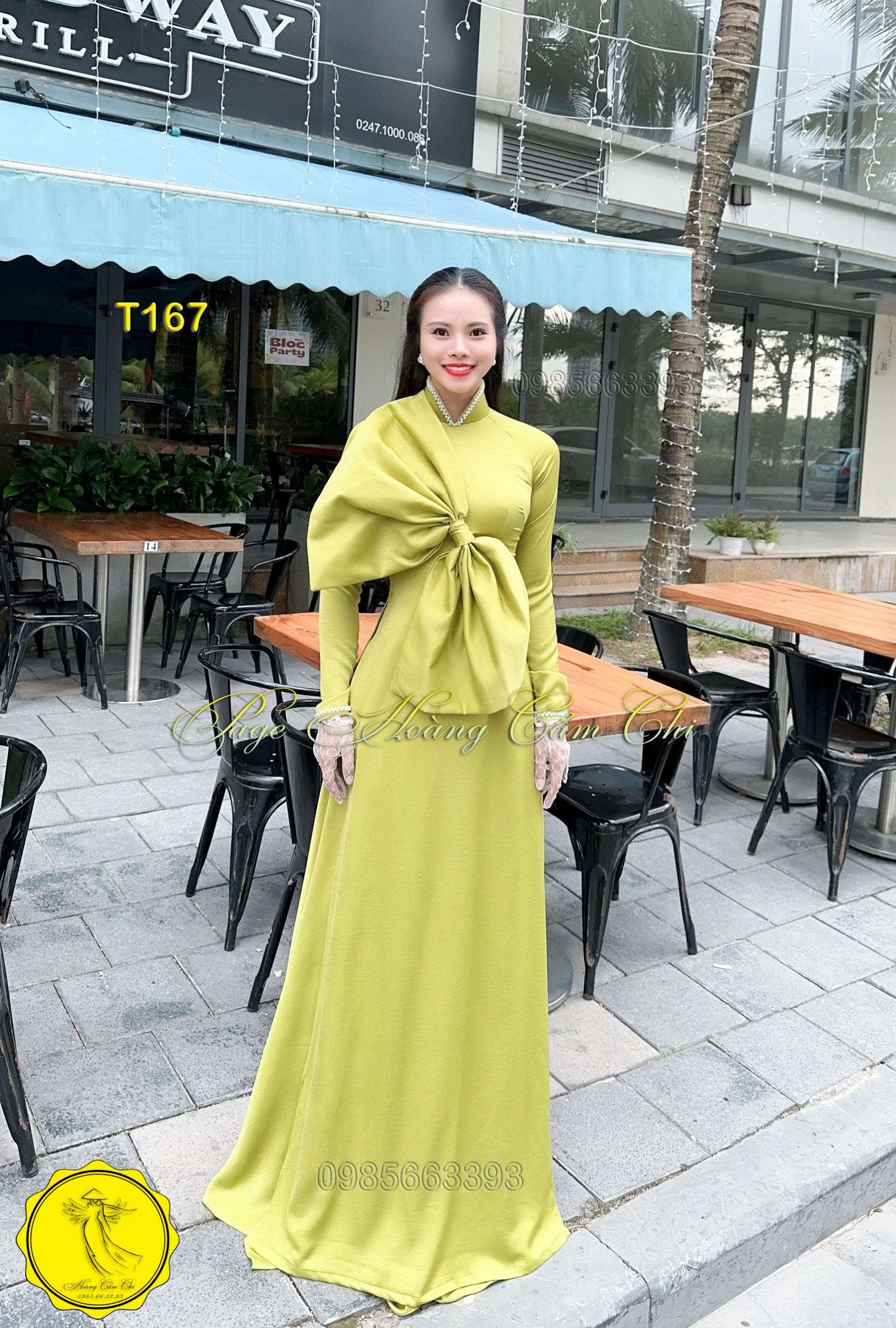 Đánh giá Áo dài thiết kế cách điệu nơ bản lớn màu xanh mạ mã T167 Hoàng Cẩm Chi