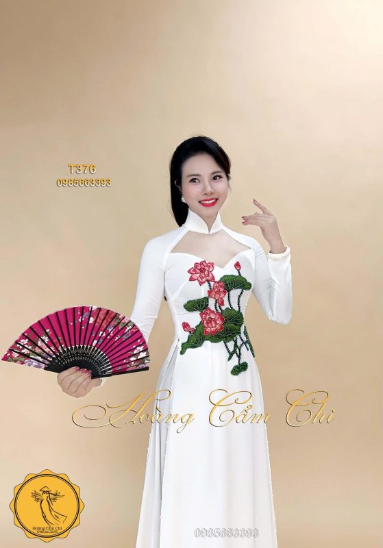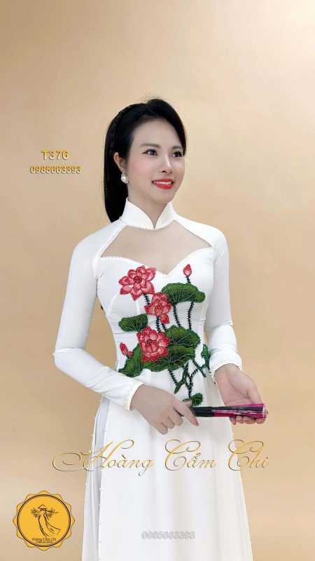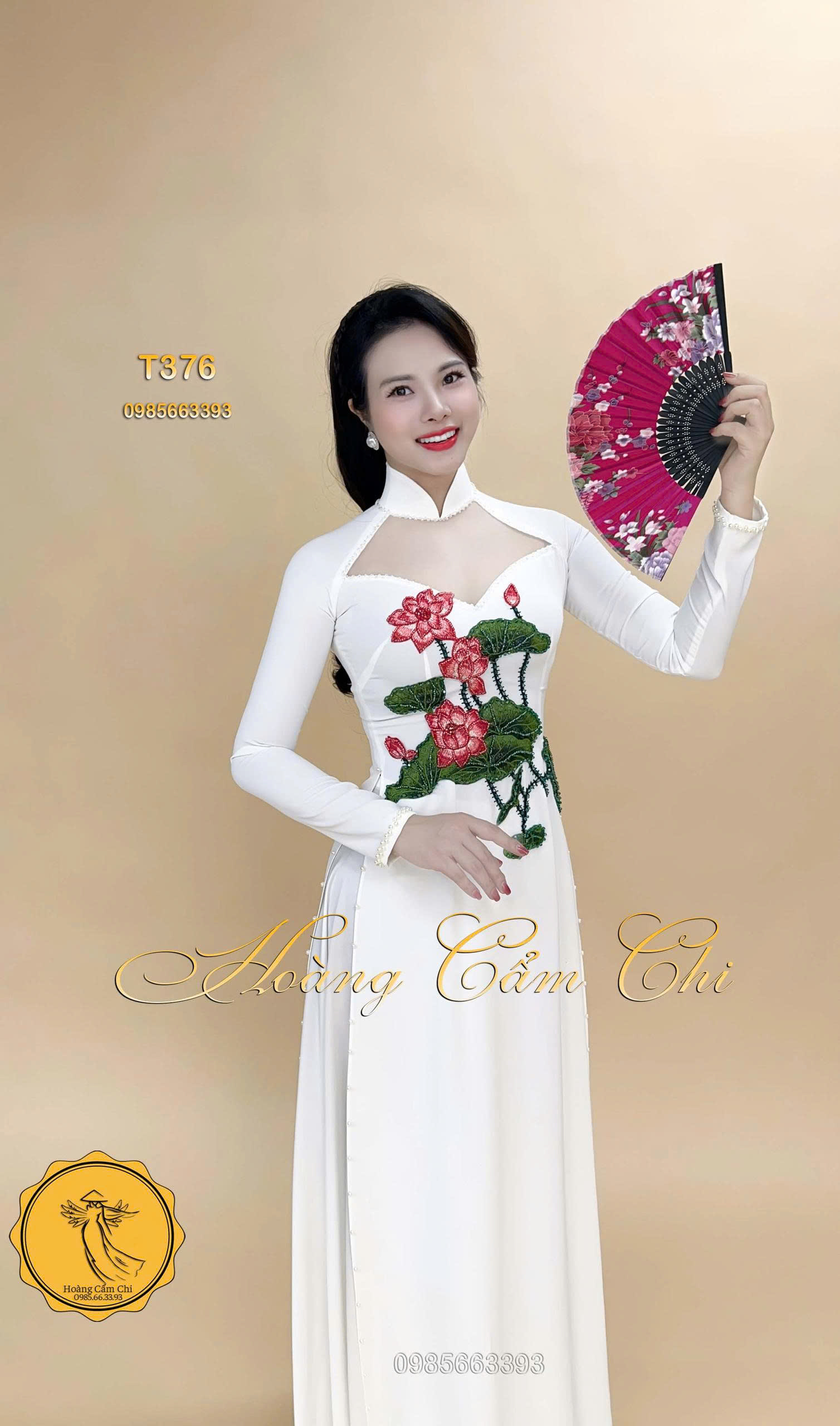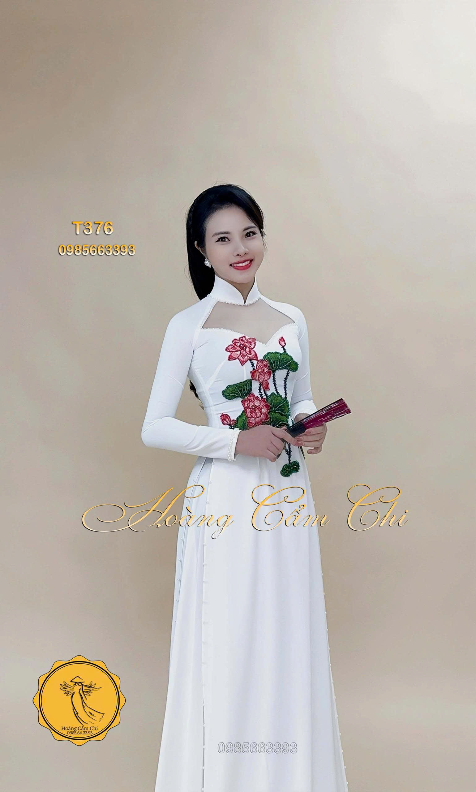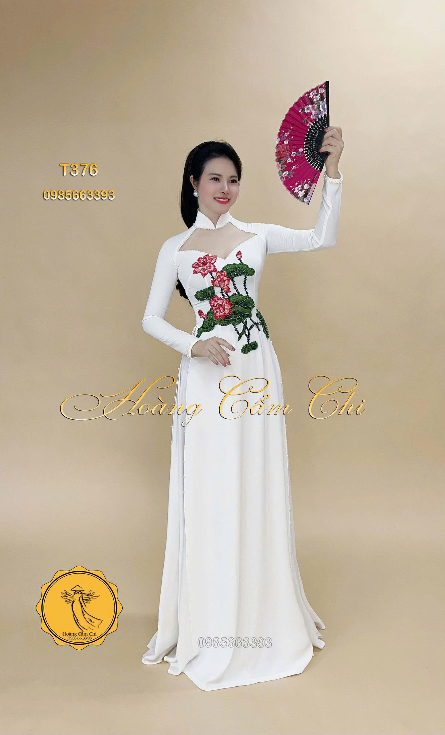 Đánh giá Áo dài thiết kế cao cấp đắp hoa sen thêu nổi Hoàng Cẩm Chi