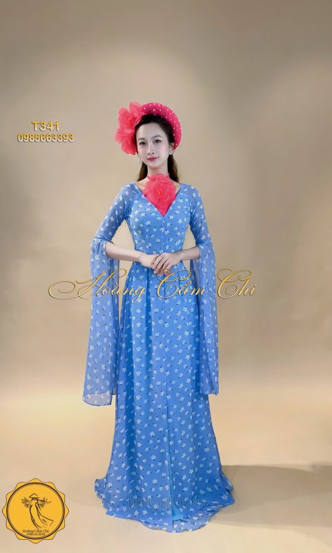 💙 Nàng thơ trong sắc trời xanh – Áo dài T341 mang vẻ đẹp dịu dàng, cổ điển nhưng đầy cuốn hút.