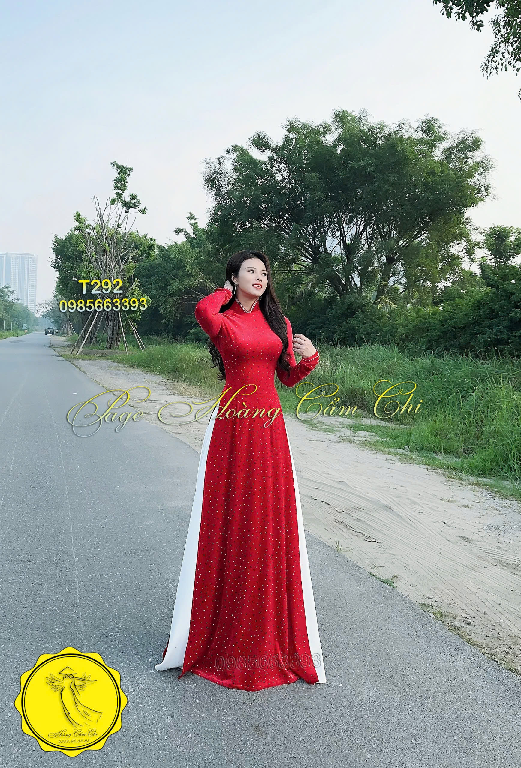 Tinh tế trong từng đường nét, nổi bật với chất liệu đỏ đính đá lấp lánh, mẫu áo dài T292 là lựa chọn lý tưởng cho các dịp quan trọng như lễ hội, chụp ảnh kỷ niệm, hoặc ngày trọng đại.