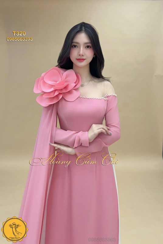 Áo dài thiết kế Đóa Hoa Kiêu Sa hồng baby mã T320 Hoàng Cẩm Chi