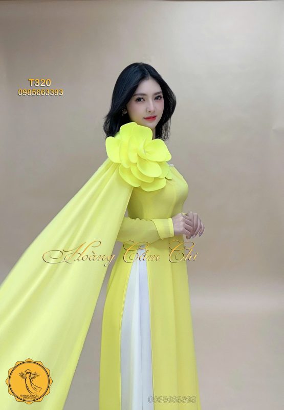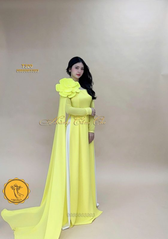 Áo dài thiết kế Đóa Hoa Kiêu Sa vàng chanh mã T320 Hoàng Cẩm Chi