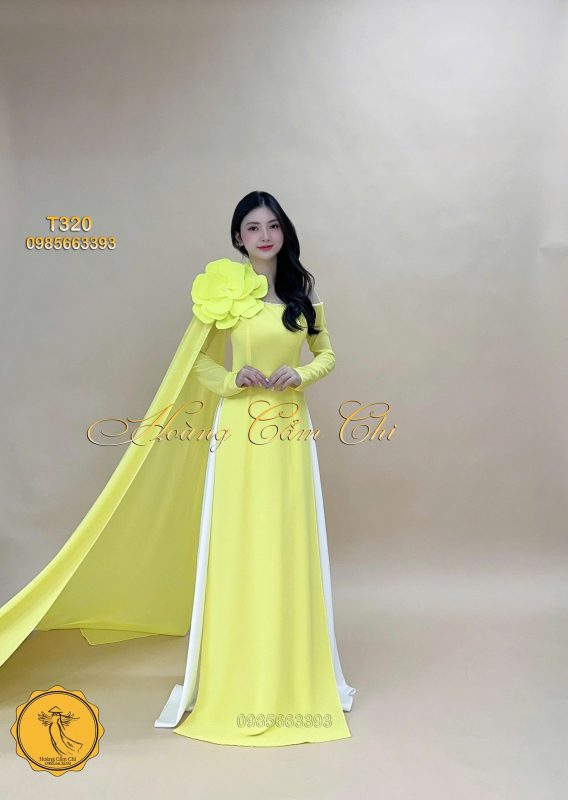 Đánh giá Áo dài thiết kế Đóa Hoa Kiêu Sa vàng chanh mã T320 Hoàng Cẩm Chi