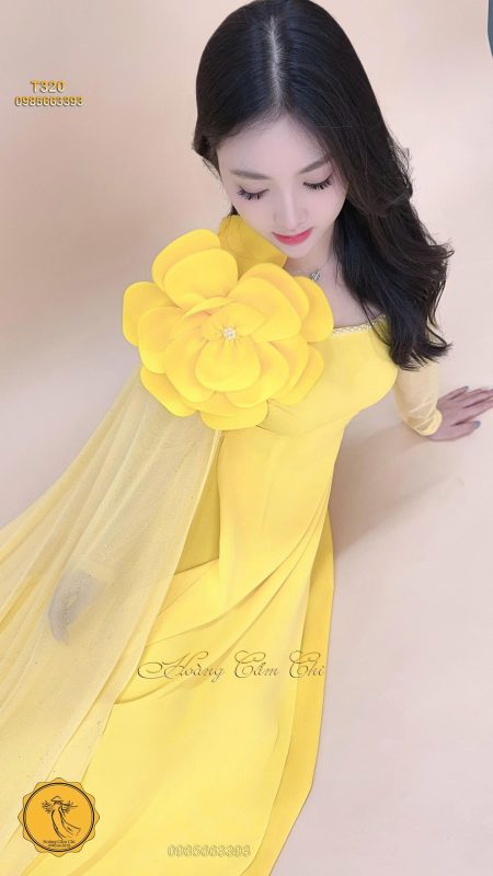 Áo dài thiết kế Đóa Hoa Kiêu Sa vàng tươi mã T320 Hoàng Cẩm Chi
