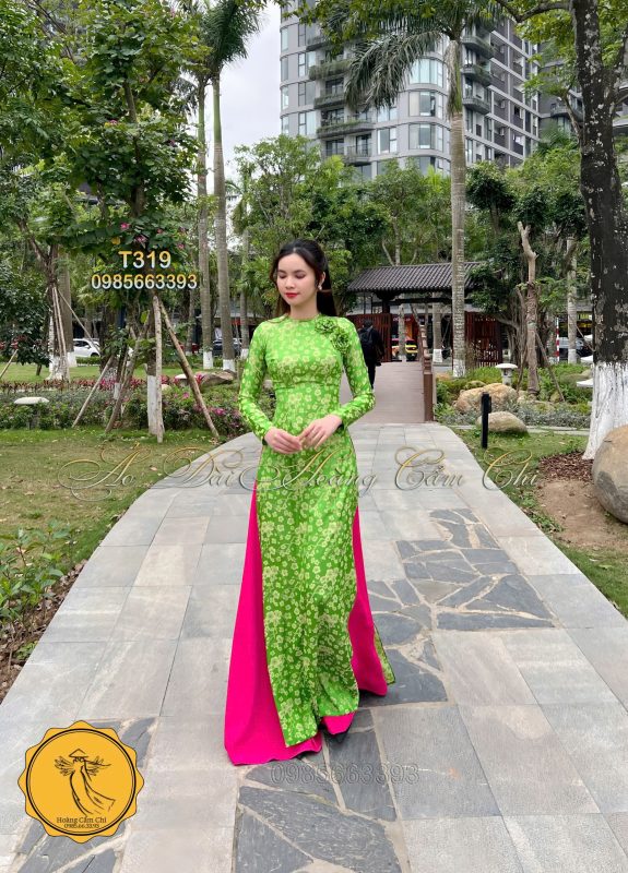 Đánh giá Áo dài thiết kế Hoa Đào Xanh Mã T319 Hoàng Cẩm Chi