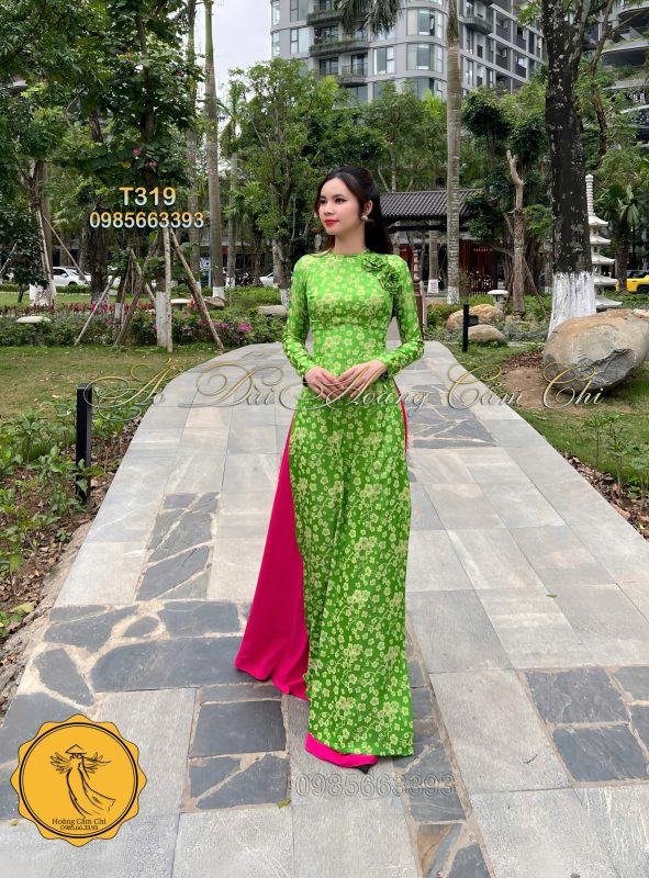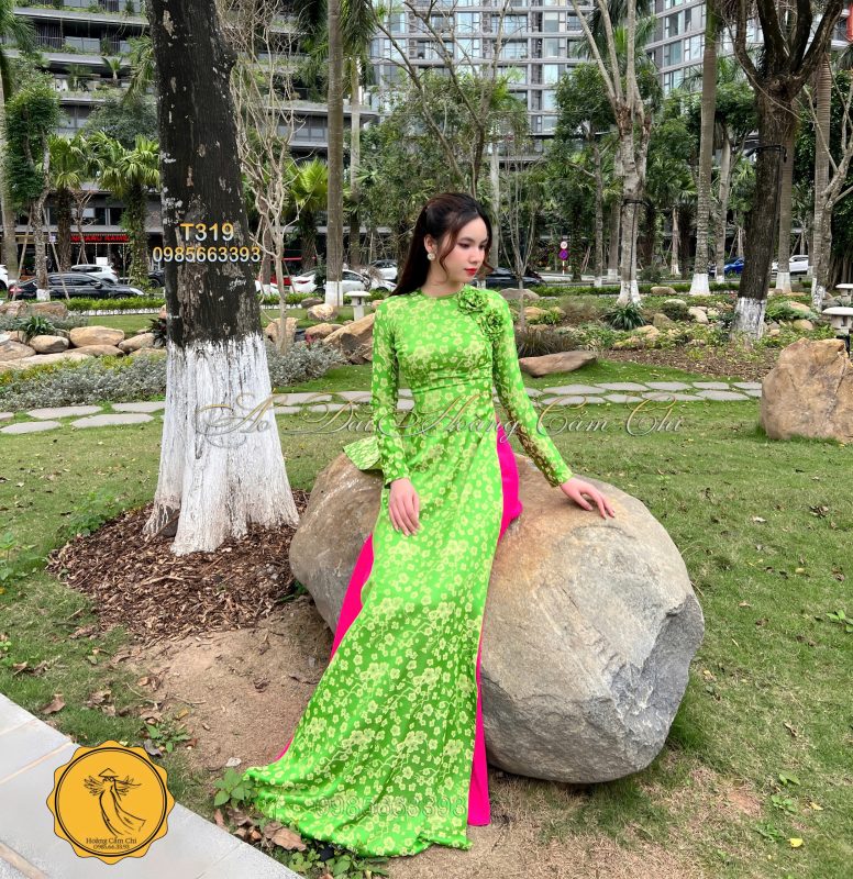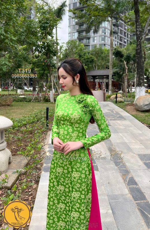 Đánh giá Áo dài thiết kế Hoa Đào Xanh Mã T319 Hoàng Cẩm Chi