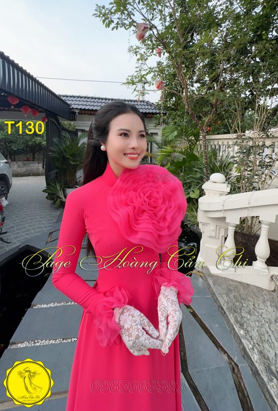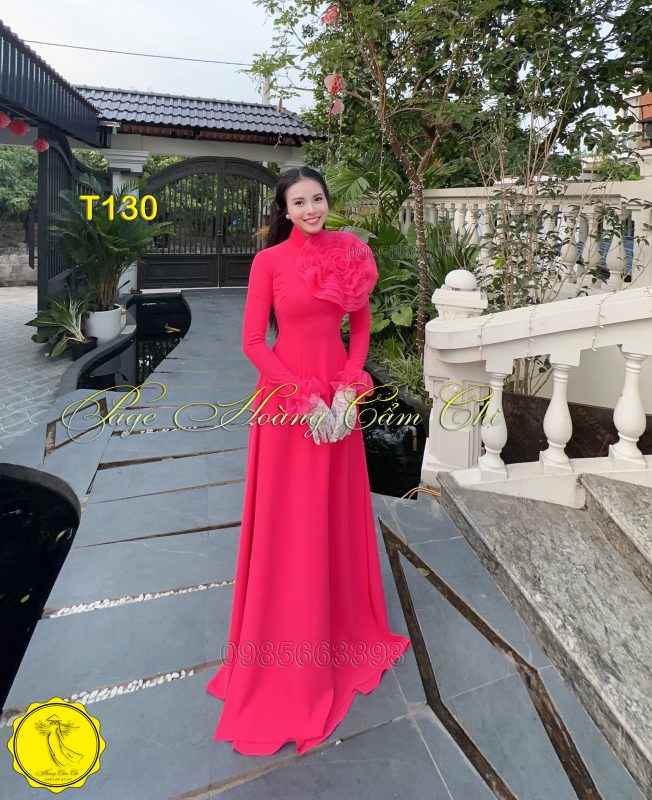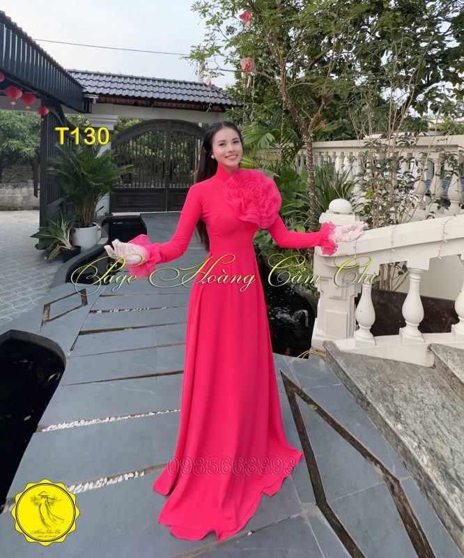 Đánh giá Áo dài thiết kế Hoa Mật màu hồng sen mã T130 Hoàng Cẩm Chi