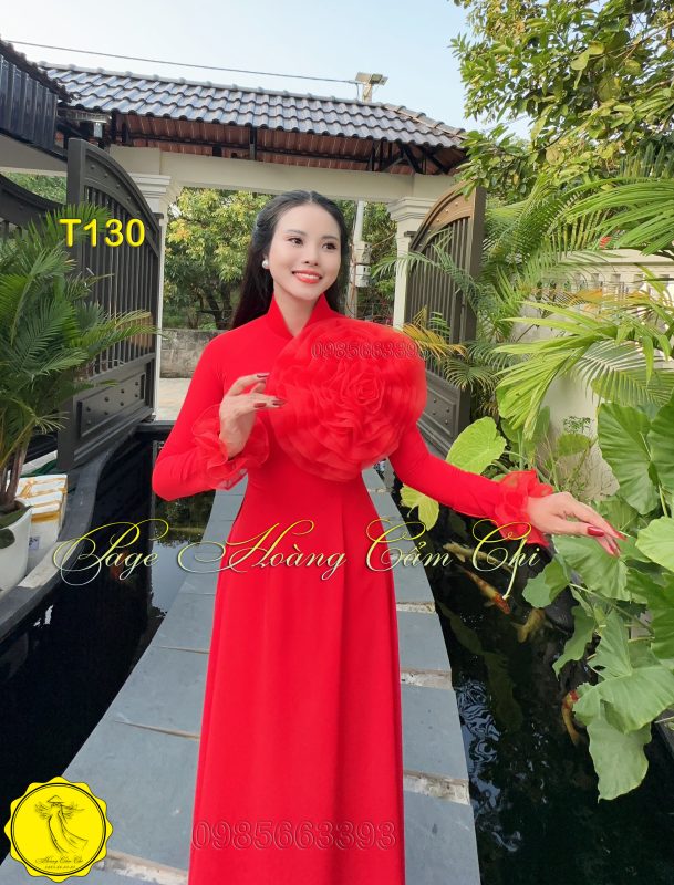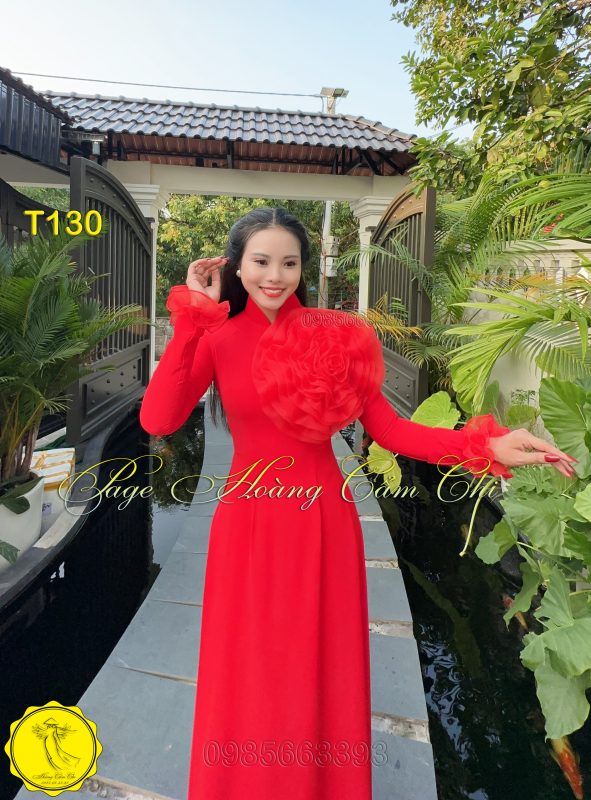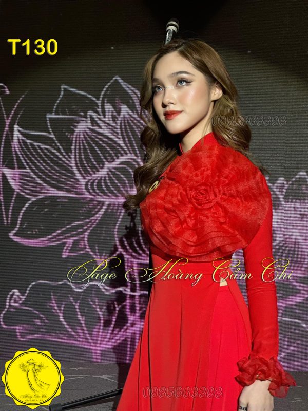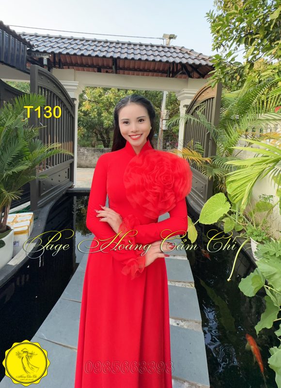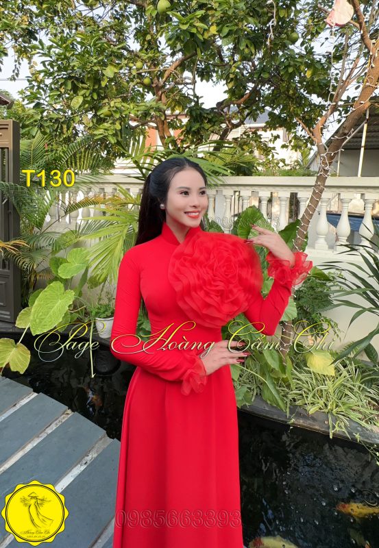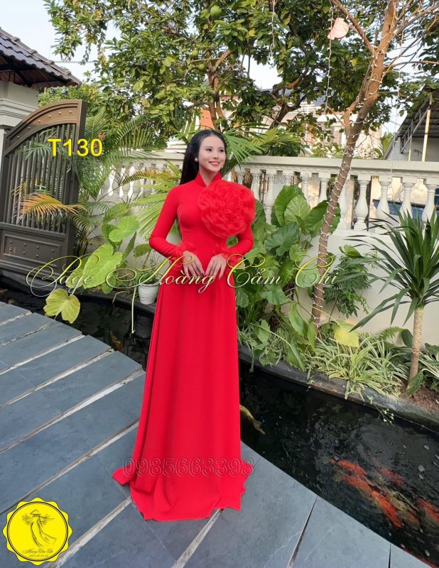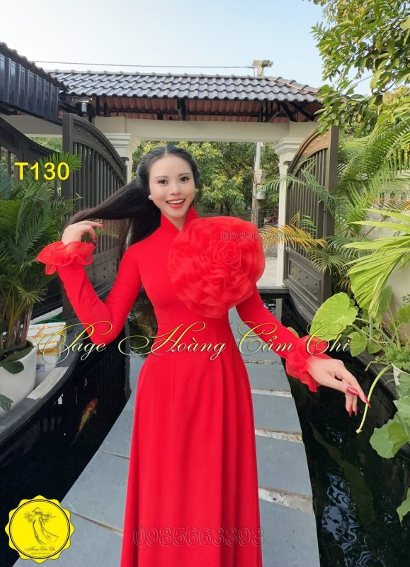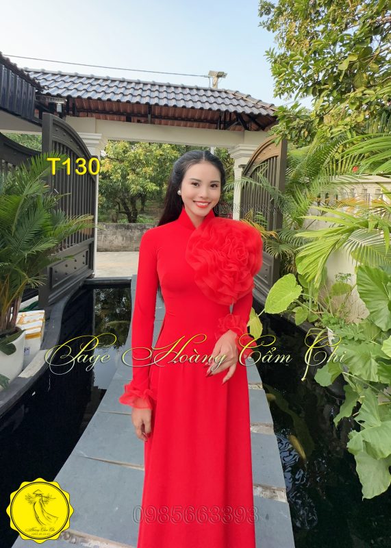 Đánh giá Áo dài thiết kế Hoa Mật màu đỏ mã T130 Hoàng Cẩm Chi