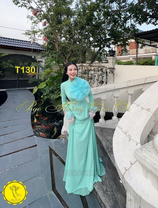 Đánh giá Áo dài thiết kế Hoa Mật màu xanh ngọc mã T130 Hoàng Cẩm Chi