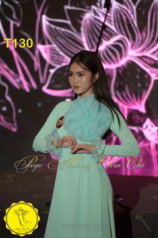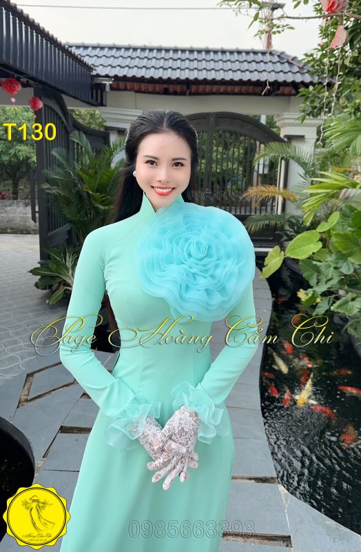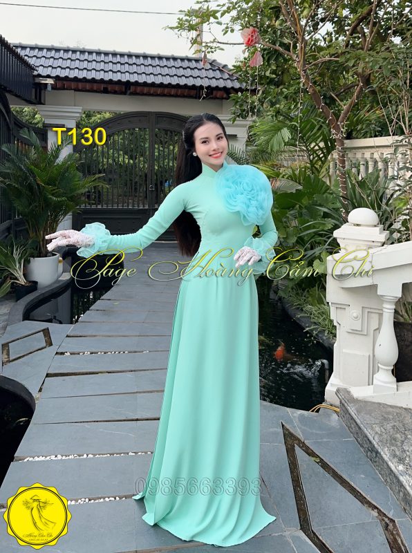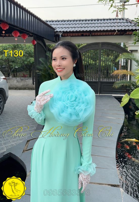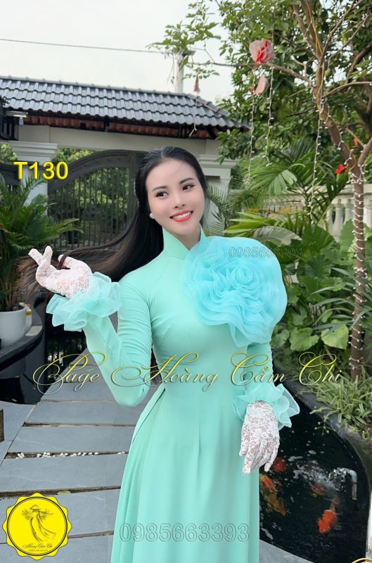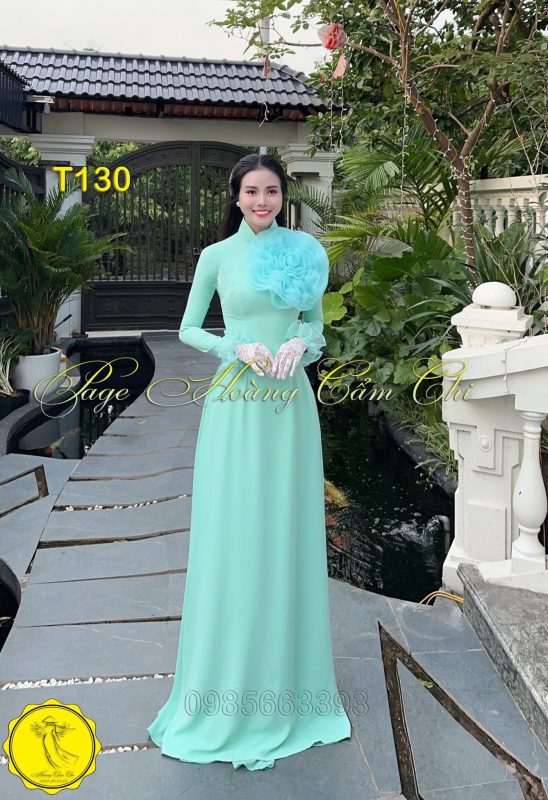 Đánh giá Áo dài thiết kế Hoa Mật màu xanh ngọc mã T130 Hoàng Cẩm Chi