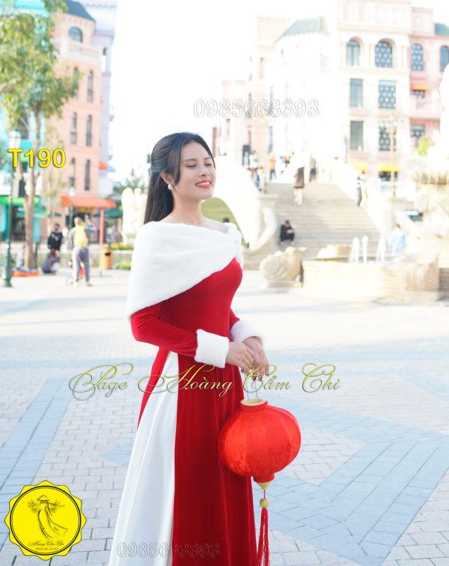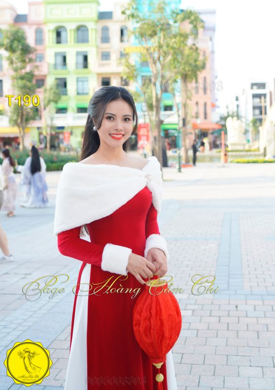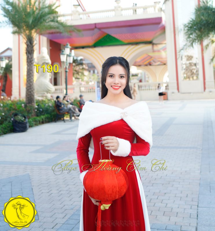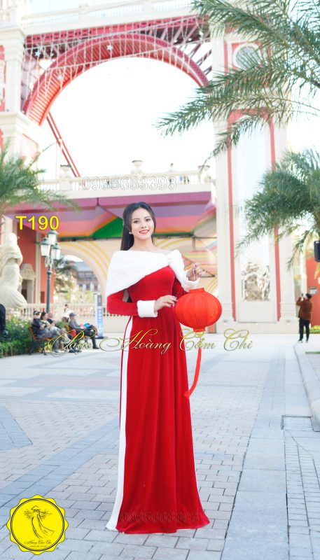 Áo dài thiết kế Hồng Ánh nhung đỏ mã T190 Hoàng Cẩm Chi