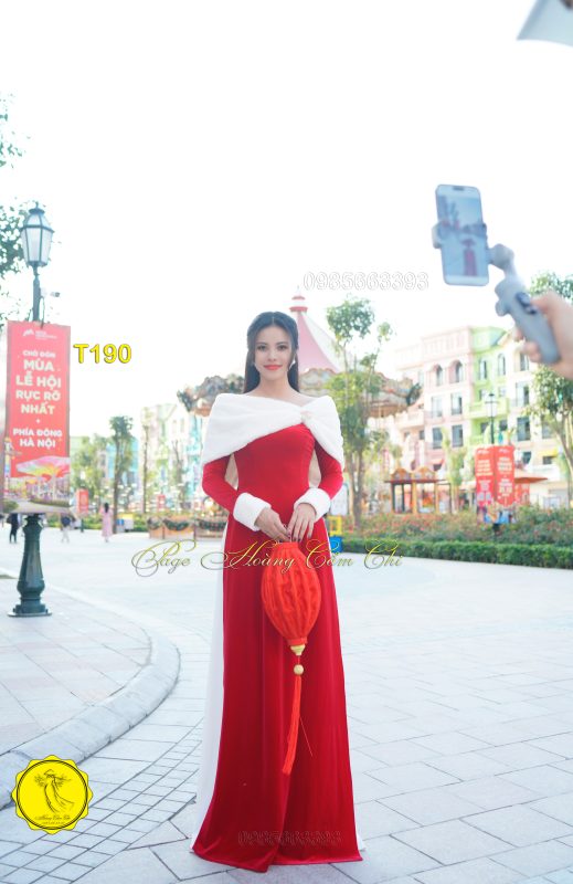 Đánh giá Áo dài thiết kế Hồng Ánh nhung đỏ mã T190 Hoàng Cẩm Chi