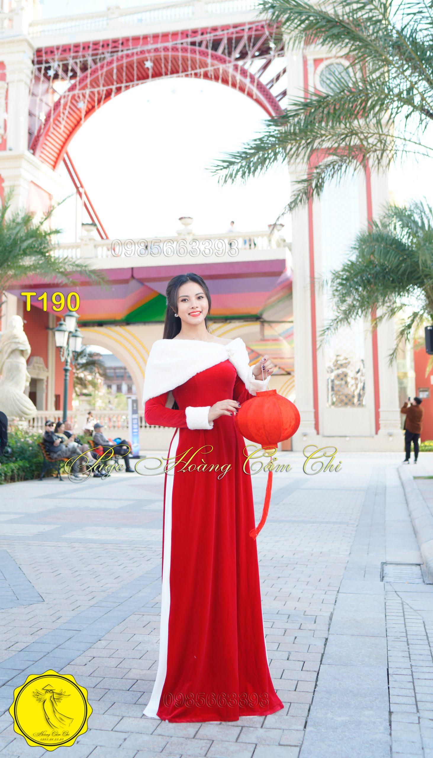 Đánh giá Áo dài thiết kế Hồng Ánh nhung đỏ mã T190 Hoàng Cẩm Chi