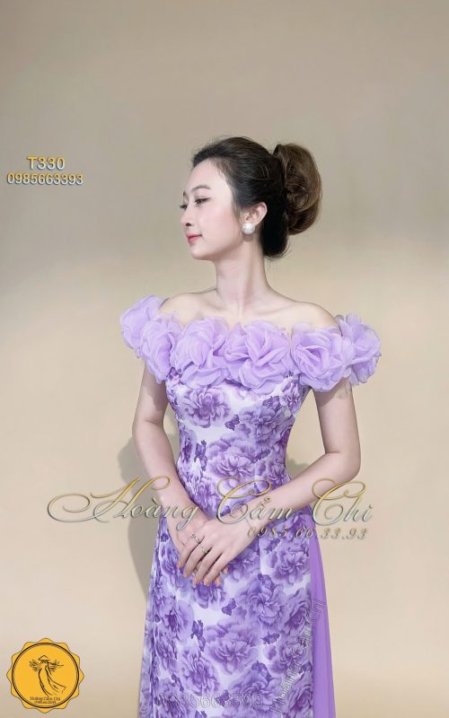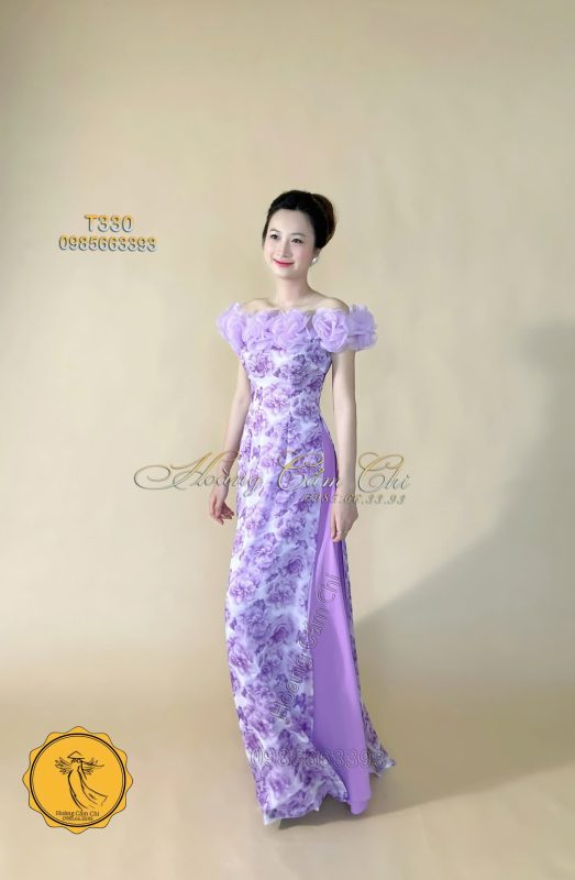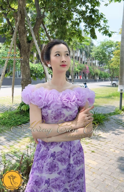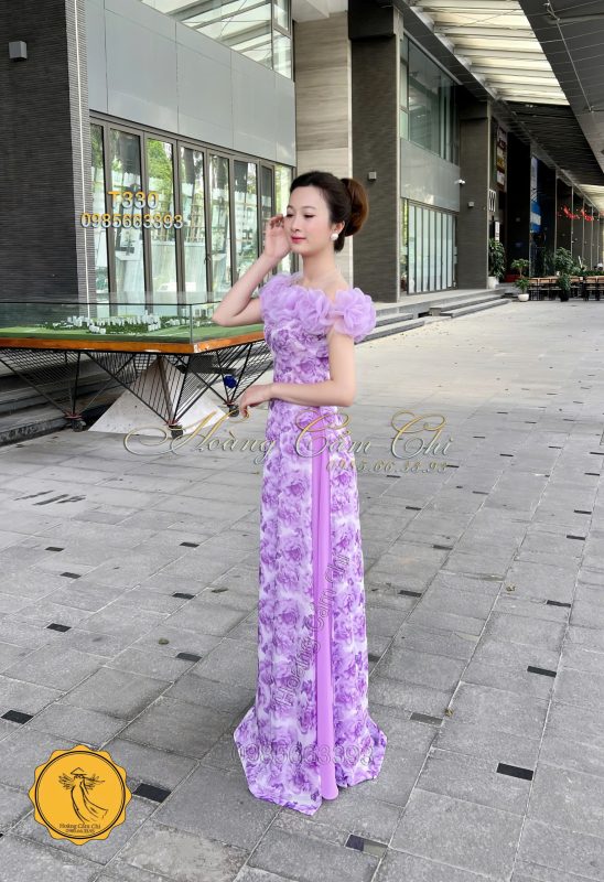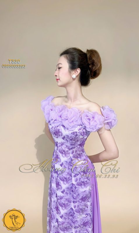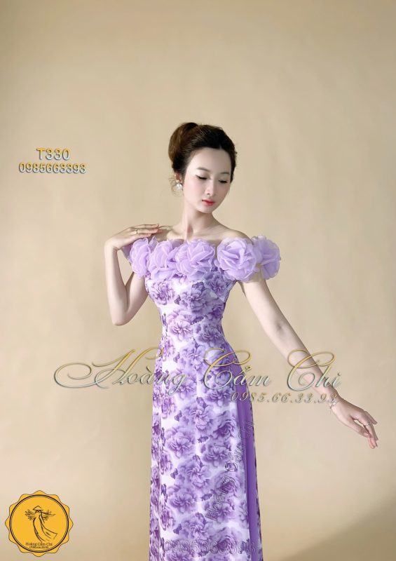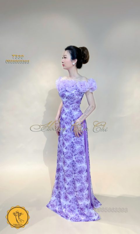 “Vẻ đẹp tinh tế và duyên dáng với tà áo dài tím hoa nổi bật – lựa chọn hoàn hảo cho mọi dịp lễ hội và sự kiện quan trọng.”