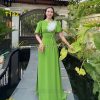 Mẫu áo dài T132 mang thiết kế tay bồng cổ điển kết hợp họa tiết hoa sen đính ngọc trai tinh xảo. Dù là phiên bản xanh lá tươi mát hay hồng dịu dàng, đều giúp tôn bật khí chất thanh lịch và trang nhã.💚 Màu xanh – Tươi trẻ, nổi bật giữa thiên nhiên