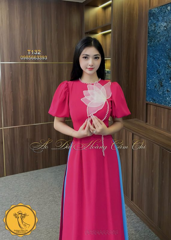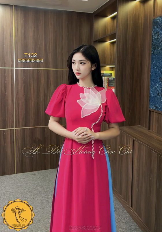 Mẫu áo dài T132 mang thiết kế tay bồng cổ điển kết hợp họa tiết hoa sen đính ngọc trai tinh xảo. Dù là phiên bản xanh lá tươi mát hay hồng dịu dàng, đều giúp tôn bật khí chất thanh lịch và trang nhã.💚 Màu xanh – Tươi trẻ, nổi bật giữa thiên nhiên