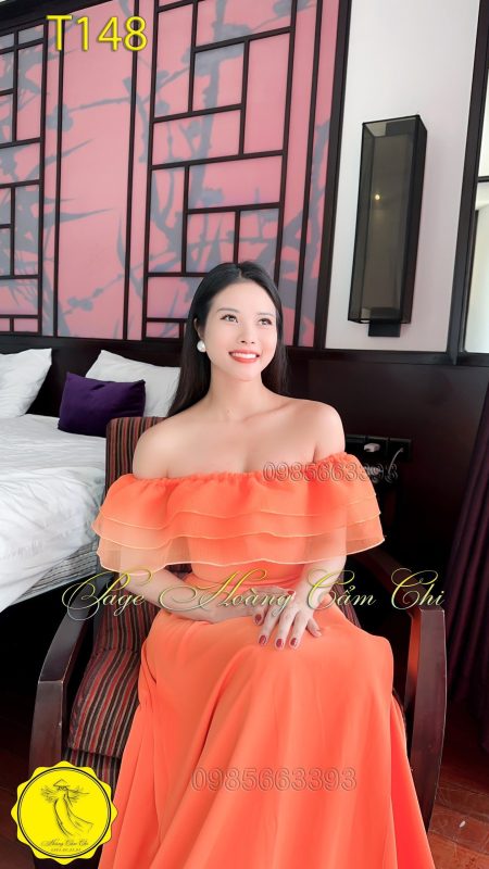Áo dài thiết kế mã T148 màu cam Hoàng Cẩm Chi