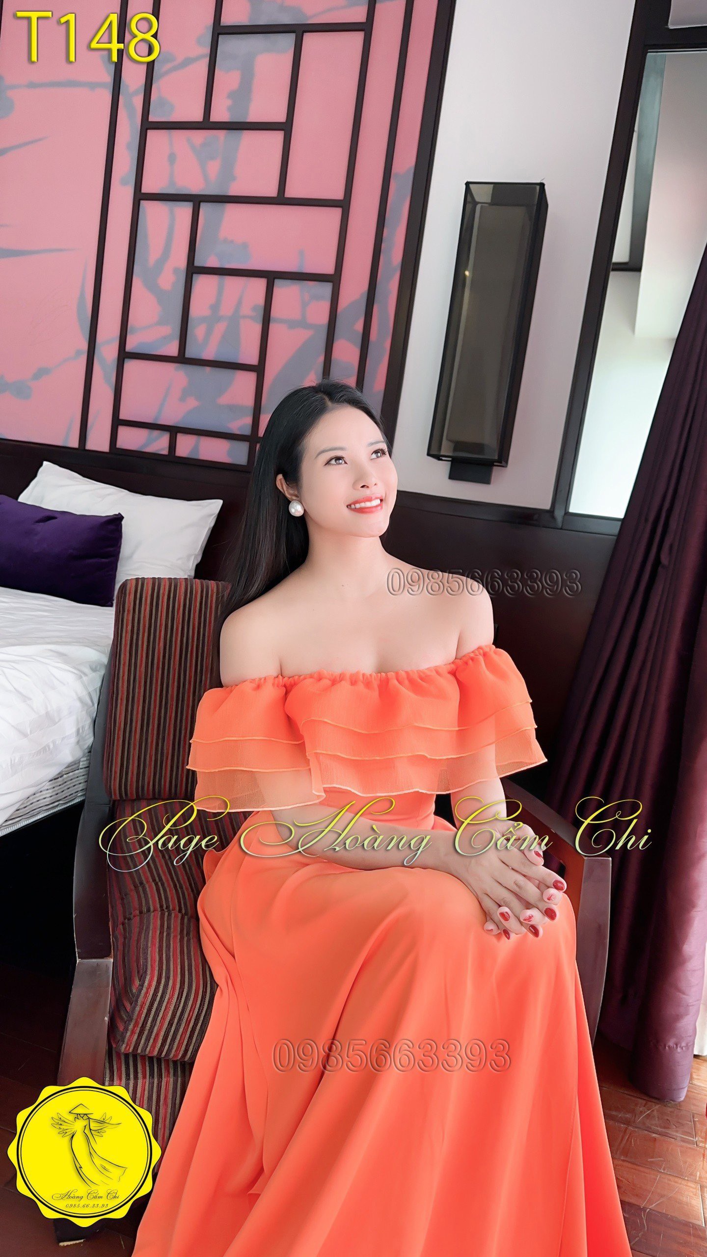 Đánh giá Áo dài thiết kế mã T148 màu cam Hoàng Cẩm Chi