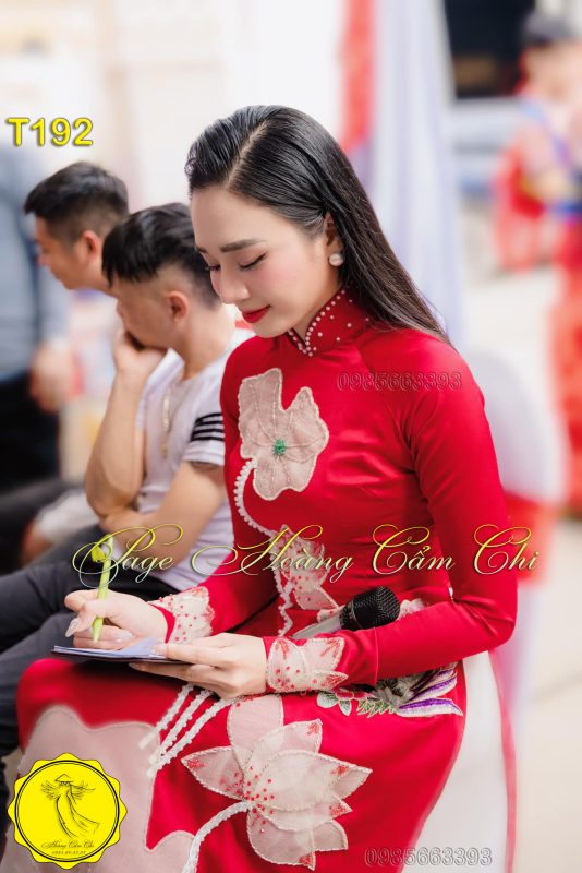 🔥 Tỏa sáng đầy quyền lực với sắc đỏ rực rỡ – Mẫu áo dài T192 nổi bật với họa tiết hoa sen lớn thêu tay tinh xảo, mang đến vẻ đẹp thanh lịch và sang trọng.