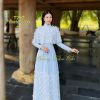 T357 là mẫu áo dài mang vẻ đẹp nền nã, dịu dàng nhưng không kém phần cuốn hút. Sự kết hợp hài hòa giữa gam trắng tinh khôi và sắc xanh nổi bật tạo nên tổng thể thanh thoát, hiện đại.