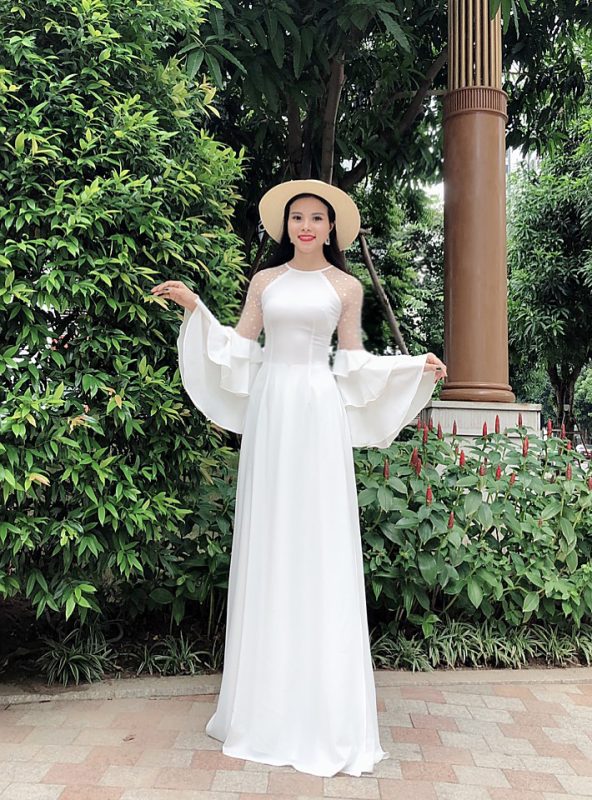 ✨ Tỏa sáng với chiếc áo dài trắng tinh khôi, thiết kế tay bèo lạ mắt và phần tay áo đính ngọc trai sang trọng. Phong cách thanh lịch, nhẹ nhàng nhưng vẫn đầy nổi bật cho mọi dịp đặc biệt! 🌸💫