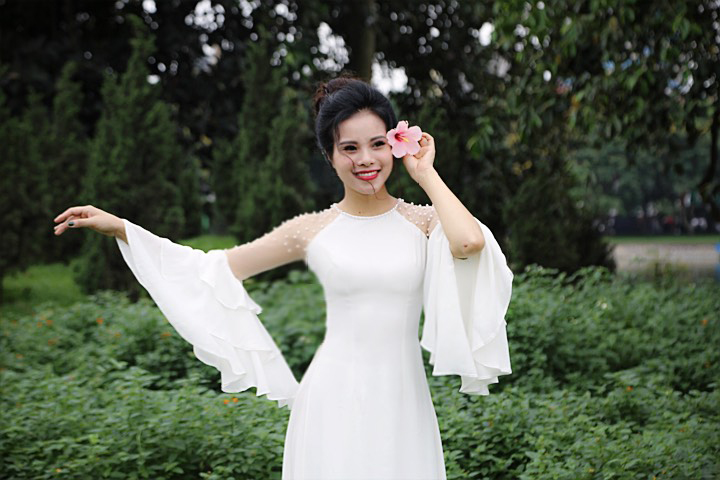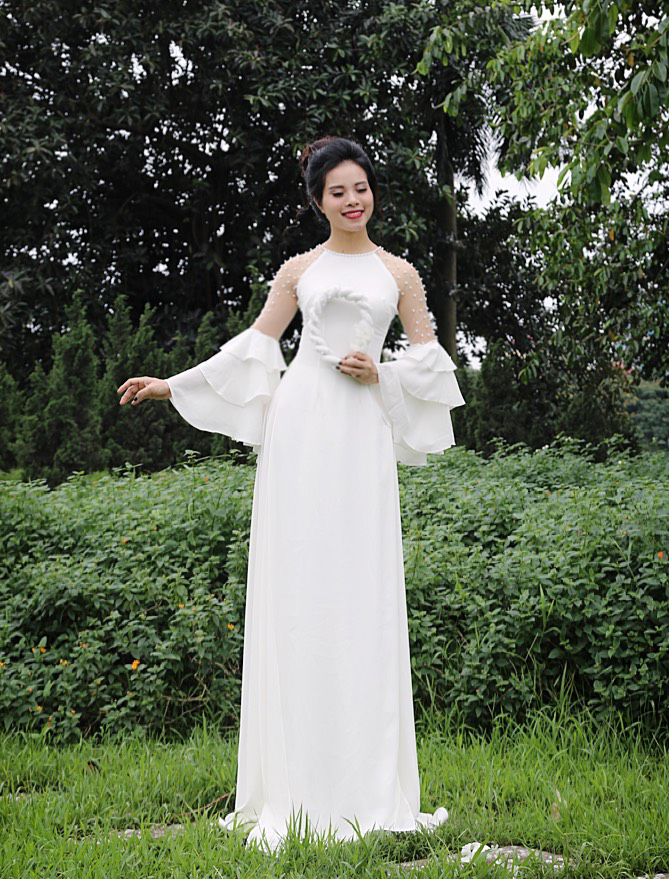 ✨ Tỏa sáng với chiếc áo dài trắng tinh khôi, thiết kế tay bèo lạ mắt và phần tay áo đính ngọc trai sang trọng. Phong cách thanh lịch, nhẹ nhàng nhưng vẫn đầy nổi bật cho mọi dịp đặc biệt! 🌸💫