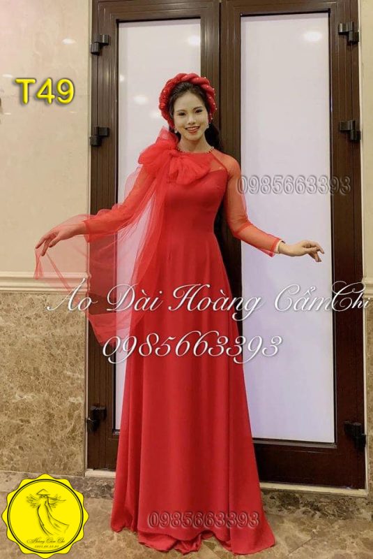 • 🎨 Màu sắc: Màu đỏ chủ đạo – nổi bật, quyến rũ, rất phù hợp làm áo dài cưới hoặc sự kiện
