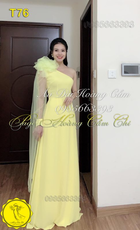 💛 Tỏa sáng đầy kiêu sa với áo dài lệch vai T76