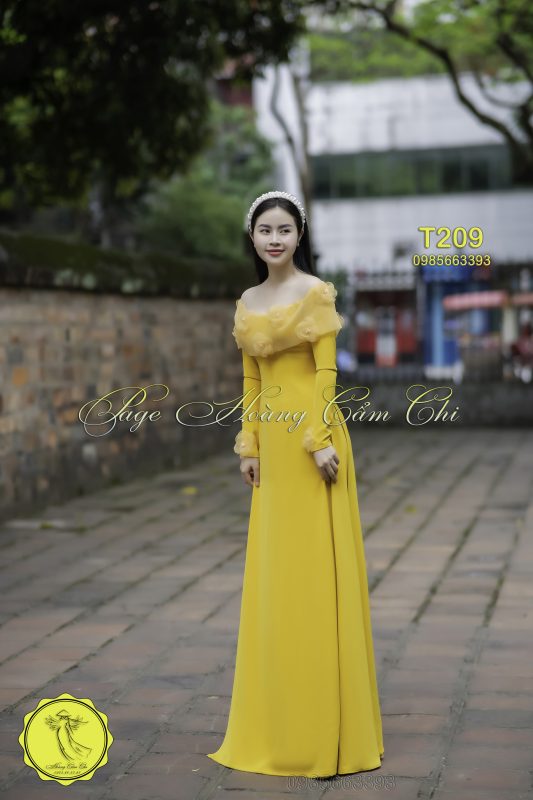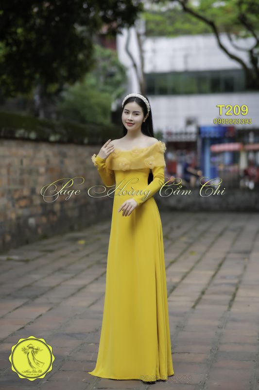 Đánh giá Áo dài thiết kế Nét Xuân Duyên Dáng màu vàng mã T209 Hoàng Cẩm Chi