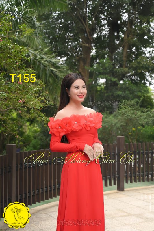 Áo dài thiết kế Ngọc Huê đỏ mã T155 Hoàng Cẩm Chi
