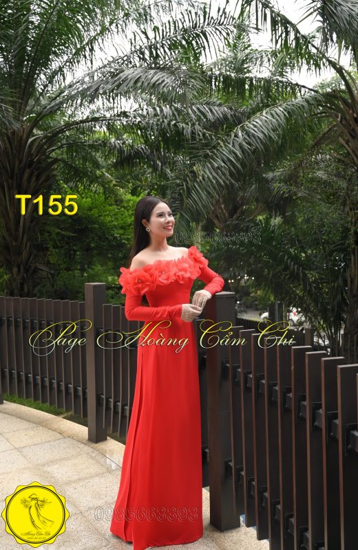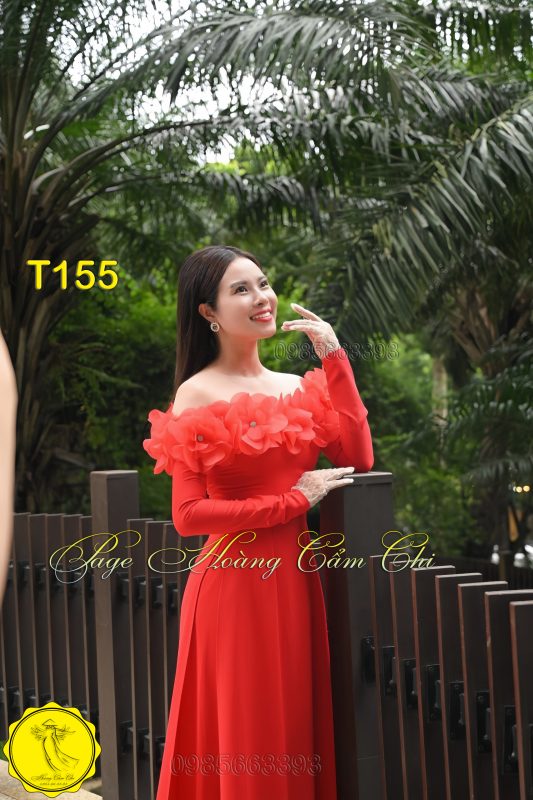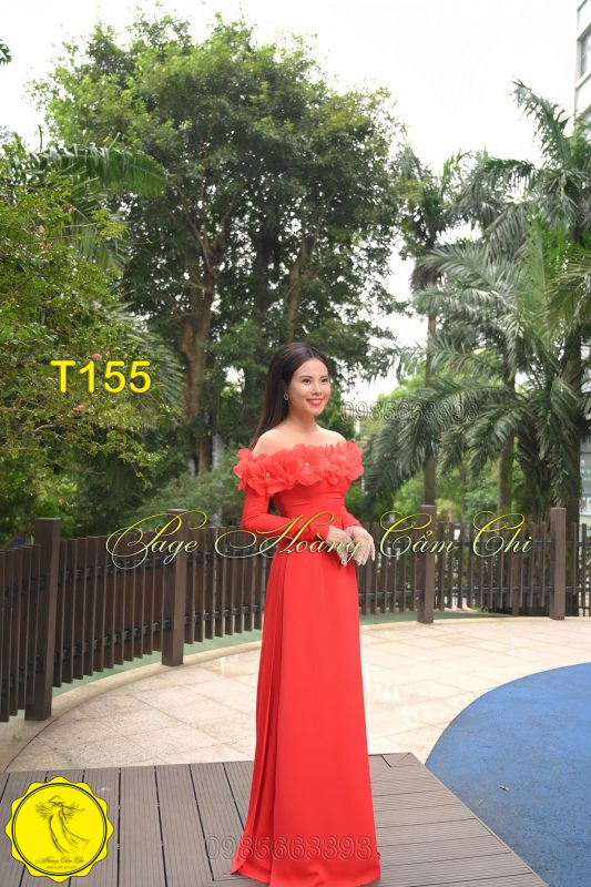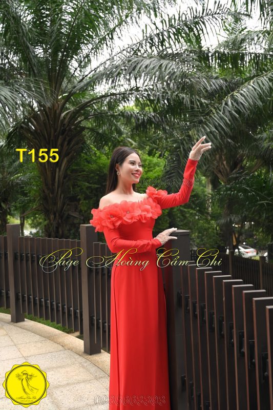 Áo dài thiết kế Ngọc Huê đỏ mã T155 Hoàng Cẩm Chi