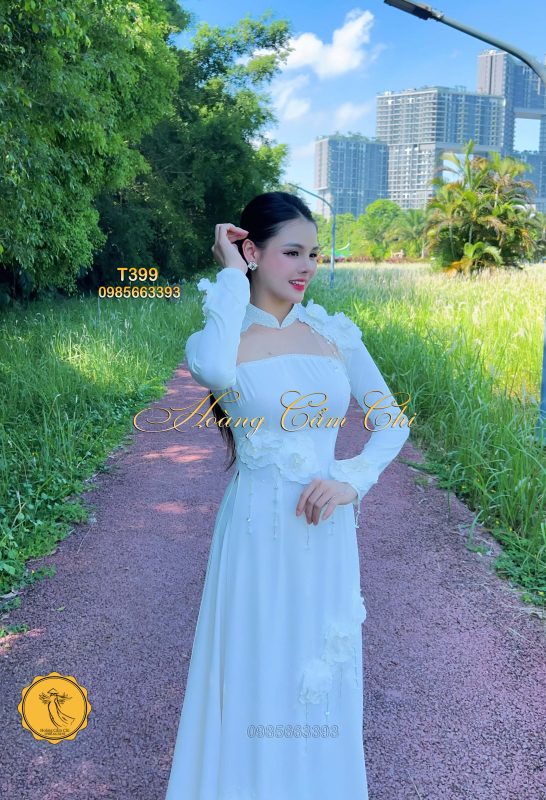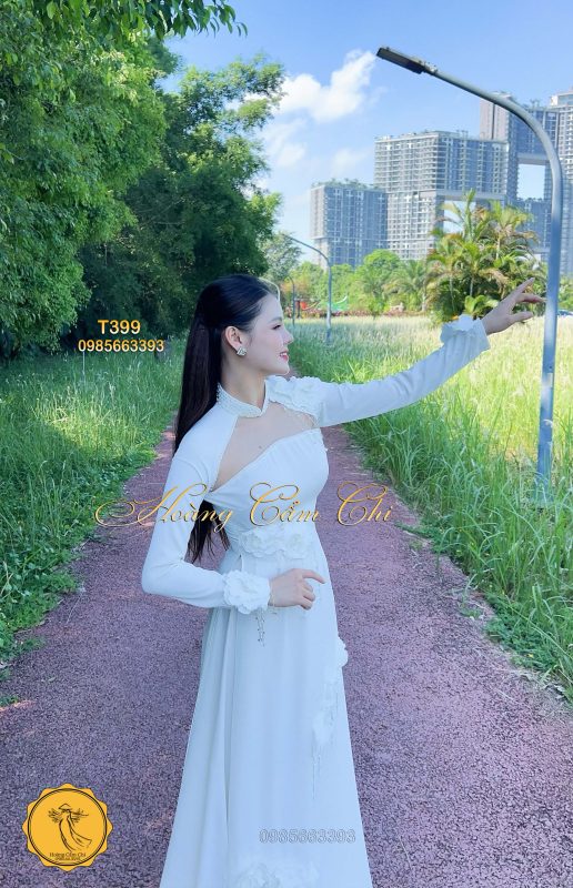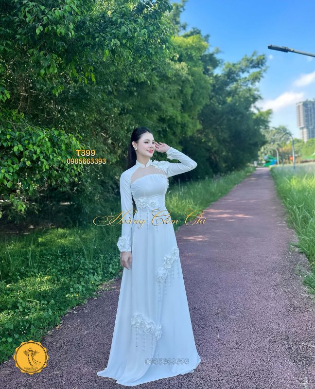 Áo dài thiết kế trắng kiêu sa mã T316 Hoàng Cẩm Chi